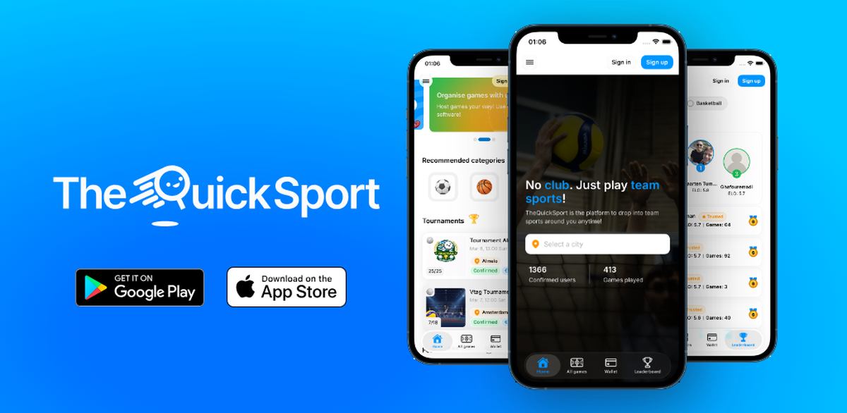 QuickSports B.V. has created a platform that enables users to easily find, join, and organize sports games without the friction of traditional organizing methods like WhatsApp groups or word of mouth. We focus on low-commitment, casual-level participation, removing barriers such as skill level, availability, or existing friend groups. Our mission is to make sports accessible, inclusive, and community-driven. Users can join games spontaneously, rate each other post-match via an ELO-based system (rating), and level up through a gamified progression mechanic - all while fostering friendships and consistent activity. Come and meet us at the Career Fair! Visit our website: www.thequicksport.com Download our app: https://apps.apple.com/us/app/thequicksport/id6751008500 https://play.google.com/store/apps/details?id=com.quicksports.thequicksport